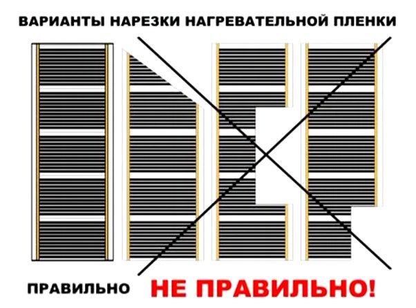 Филмът се разстила с медни нагреватели надолу, на разстояние 10 - 20 см от стените и метър от източници на топлина, например батерии. Филмът се нарязва на светли места, между тъмните области, поставя се от край до край без припокриване и също се закрепва заедно с лепяща лента.