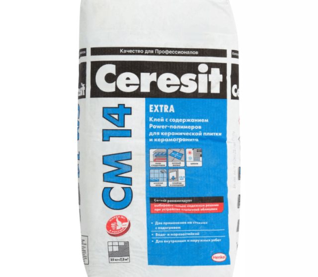 - Ceresit SM-14 Extra. Използва се за полагане на порцеланови каменни изделия на топъл под. Устойчив на повишена влага. Осигурява адхезия към бетон, циментови повърхности и хидроизолация. Работите се извършват на закрито, на открито.