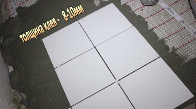 - Ако плочките се полагат върху рогозки на термичната система, трябва да се вземе предвид съставът на адхезивната суровина, тъй като химическите компоненти на разтвора могат да разрушат мрежата. Поради това се нанася предварително защитно покритие.