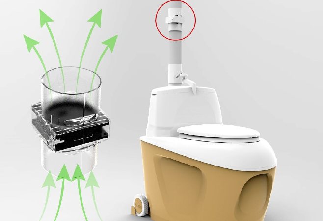 - Торфен абсорбатор, който събира всичко, което влиза в контейнера, газове, изпускани през вентилационната система, абсорбатора и клапана;
