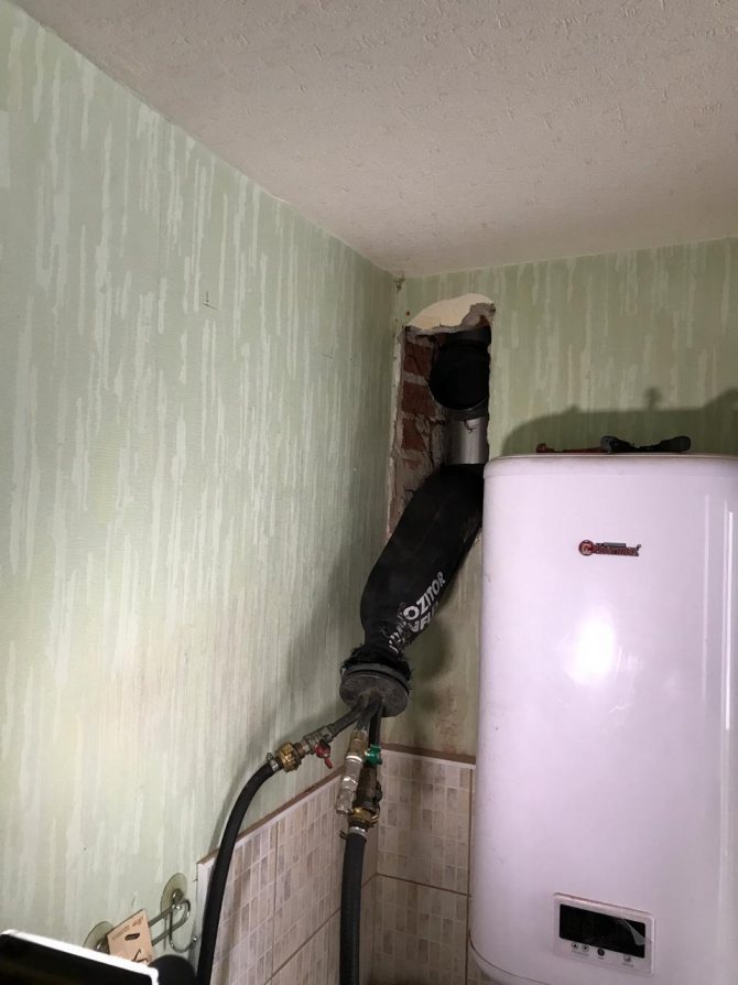 Вълнообразната вентилационна тръба от марката на отдушника с диаметър 75 mm е свързана към изходната тръба на корпуса на резервоара с абсорбера. За пълното отстраняване на димните газове трябва да бъдат изпълнени няколко условия за монтаж: