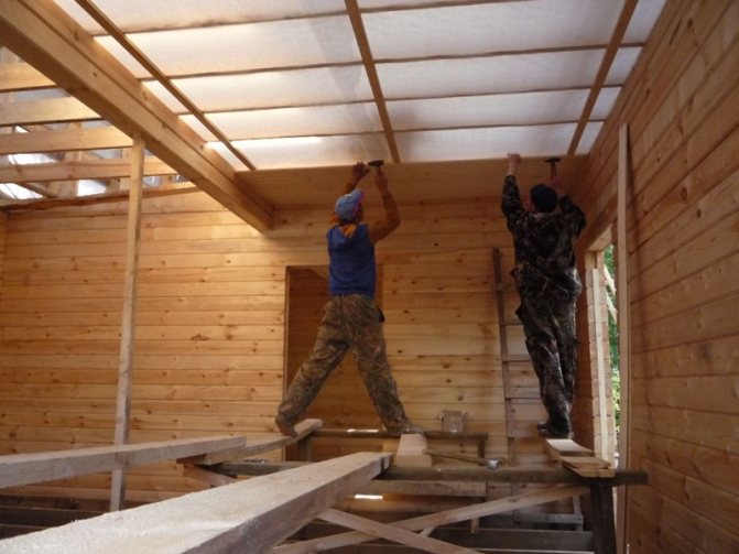 Ако дървена къща е построена съвсем наскоро, в нея все още се извършват довършителни работи, тогава това е най-подходящото време за изолиране на дървен таван с минерална вата, след което можете веднага да започнете довършването на тавана. Към дървения таван е прикрепена рамка, в кухините на която са положени листове от минерална вата. Рамката служи и като основа, към която е прикрепено покритието на тавана - облицовка, гискартон, фибростъкло и др. Тъй като рамката носи определено натоварване, препоръчваме да използвате борд 40x150x6000 по време на монтажа.
