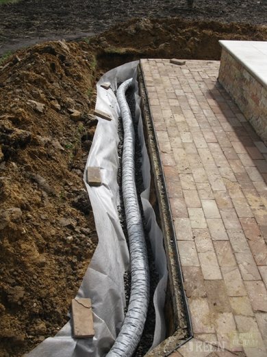 Около дренажните тръби е положен филтриращ материал, който не позволява да преминат и най-малките частици и следователно осигурява ефективната работа на цялата дренажна система без отнемащо време почистване. Защитата на основата от замръзване се извършва по същия начин, както при предотвратяване на въздействието на надигащата се почва.