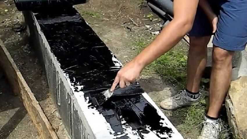 Битумната боя или мастика се нанася в 2 задължителни слоя. Първо едно (и след това изсъхва), след това (след като първото е напълно сухо) - второто. Битумът изсъхва напълно за поне 4 часа.В същото време е по-добре да използвате битумен мастик за втория слой горещ. И слоевете хидроизолация трябва да бъдат хомогенни по състав.