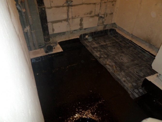 (3) След това върху пода се нанася битумно-водна емулсия. Хидроизолационната смес се нанася на няколко слоя с прекъсвания, за да изсъхне. В същото време непрекъснатостта на прилагането му се спазва стриктно, в противен случай хидроизолацията ще загуби значението си.
