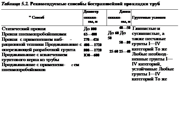 -При избора на метод за полагане на обсадна тръба, диаметърът и дължината на тръбата, която трябва да бъде положена, почвените и хидрогеоложките условия, предназначението и техническото състояние на наземните конструкции по трасето на пресичане, експлоатационни изисквания за изграждащия се прелез (якост полагането, изискванията за изолация и др.) се вземат предвид "икономическата целесъобразност (Таблица 5.2).