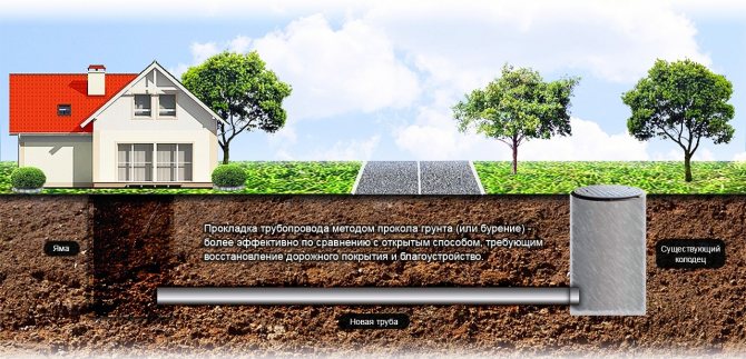 В допълнение към метода на заглавието, ние описахме алтернативни опции за полагане на тръби в земята, използвайки технология без траншеи, приложени схеми, снимки и видео материали.