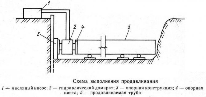 Пробиването на стоманени тръби с диаметър 500-2000 мм или стоманобетонни колектори с кръгло, квадратно или правоъгълно напречно сечение на разстояние до 80 m се извършва чрез нагнетателни помпи, които свързват 2, 4, 8 или повече хидравлични крикове. Буксите са монтирани на рамката; за тяхното спиране има специална тяга, състояща се от купчини и два реда греди.