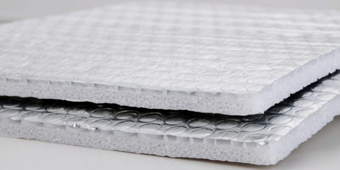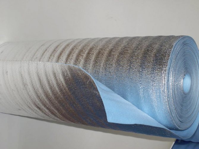 1) Изолация, състояща се от разпенен полиетилен (полиетиленова пяна). Дебелината на такава изолация може да бъде от 2 до 10 мм. Едната му страна е покрита със слой алуминиево фолио. Най-често такава изолация се доставя на рула, има ниска степен на топлопроводимост и абсорбция на вода.