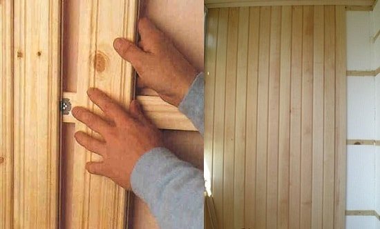 Тук има трудност с малко по-различен план: необходимо е да се оформят вратата и прозорците с изглед към балкона. Но тази операция не изисква нищо специално, с изключение на точността: дървените ламели също са приковани към стената с дюбели или дюбели и служат като основа за обшивка с довършителни материали.