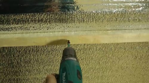 - След пяната се отвива слой от едно парче полимерен филм. Той служи като последен хидроизолационен слой. Важно е филмът да е твърд, без разкъсване и повреда - това значително ще увеличи задържането на топлина.