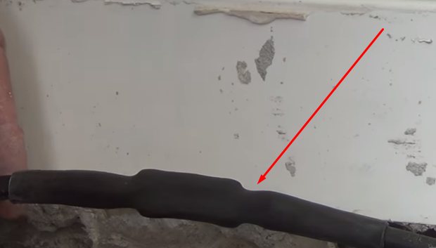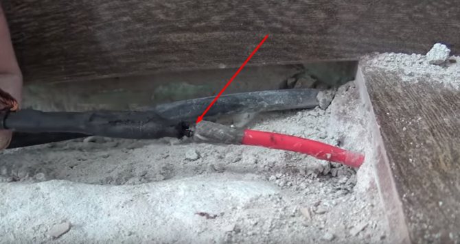 - Честа причина за повреда на кабела е използването на шпатула или шлайф при съединяване на фуги в процеса на полагане на подови плочки, когато е необходимо да се отстрани излишното втвърдено лепило в процепите между плочките. Често кабелът се полага директно в лепилото за плочки, така че е доста лесно да го повредите.