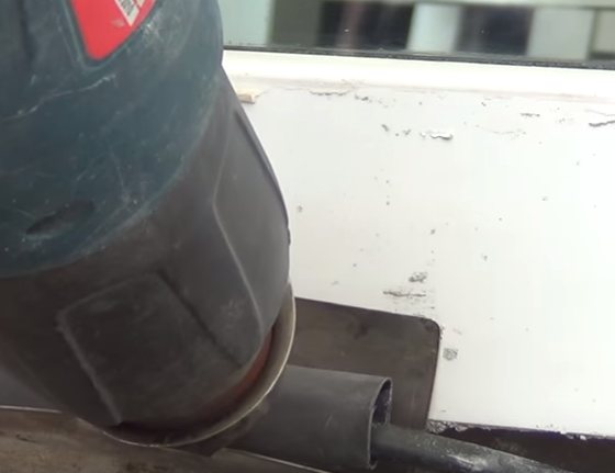 За да отрежете съединителя, той се нагрява със строителен сешоар.
