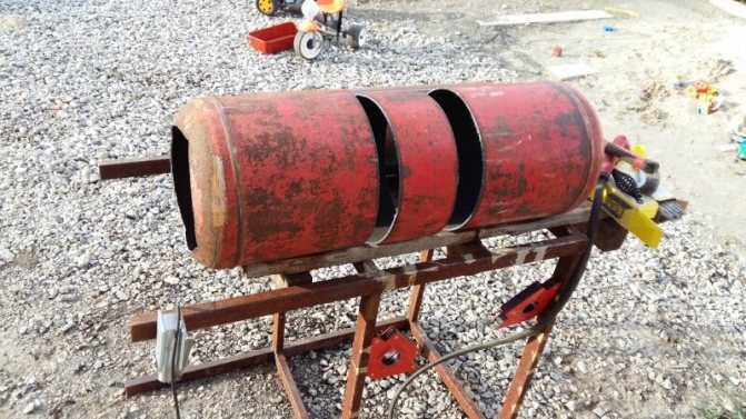Увива се в метален лист с височина до 1 метър, с прикрепена мрежа отдолу за спиране на дърва за огрев и се поставя върху тухли. Пожар, направен в този контейнер със спирала, ще се окаже мощен бойлер за басейна. Разбира се, ако свържете маркучи с помпа ...