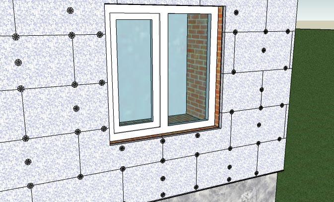 След като лепилото придобие подходящата якост, то се извършва допълнително, като фиксира пяната с дюбели. Процесът на фиксиране на изолацията с дюбели е добре показан на фигурата по-долу.