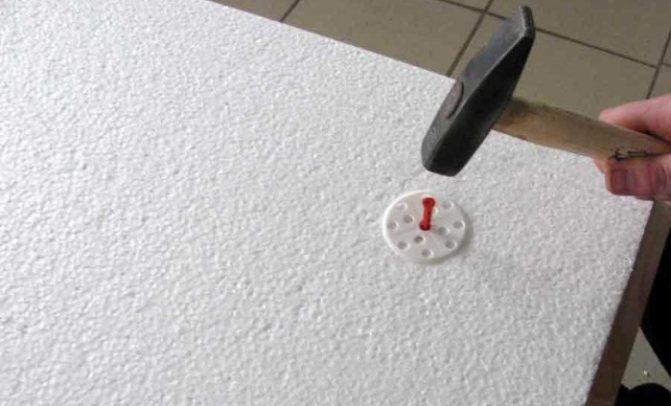 Закрепване на пяната с дюбели към стената