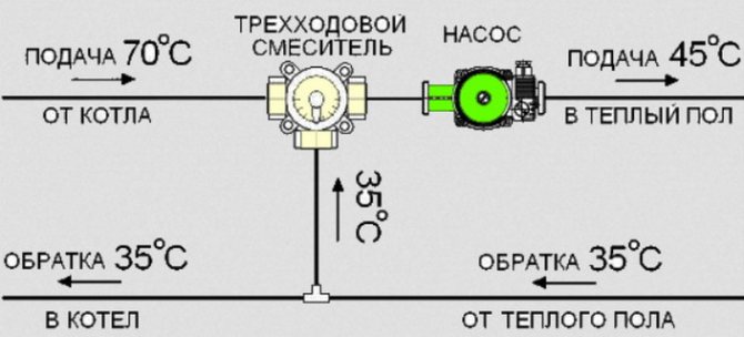 На снимката по-горе колекторът вече е свързан с тръби, датчици за дебит и смесител. В самото начало сферичните кранове са затворени (предполага се, че охлаждащата течност вече е достигнала до смесителния блок, е в него).