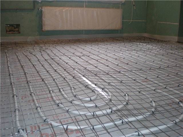 Обикновено, когато се организира подово отопление, се използва подсилваща мрежа с клетки с размери 150 × 150 mm и секция от пръти 4-5 mm. Понякога се използва двойна армировка, като в този случай вторият слой мрежа се полага отгоре на монтираната тръба.