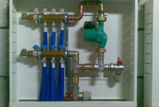 По време на изпитването под налягане трябва да се инсталира шкаф с разпределителен колектор и всички отоплителни кръгове да бъдат свързани към него..