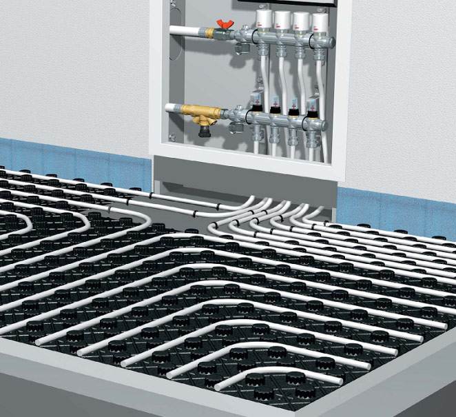 - Подготовка, като се вземе предвид вида на покритието. За бетонна замазка се извършва изпитване под налягане преди изливането. При наличие на полистирол или дървена повърхност - но затваряне на отоплителната мрежа с шперплат или гипсокартон.