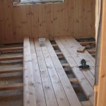 - Сега можете да инсталирате подовата настилка. За да направите това, можете да използвате стари дъски, ако са в добро състояние, или да поставите нови.