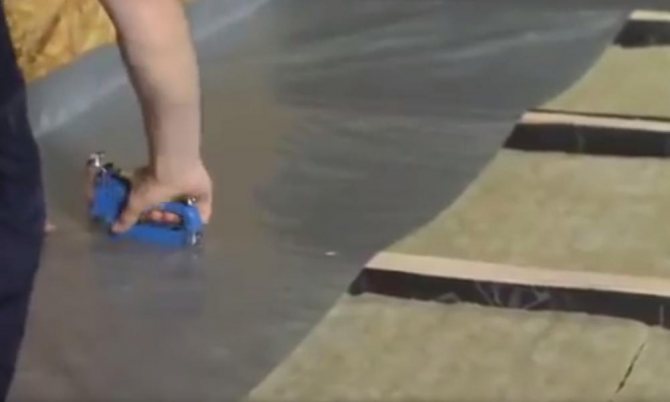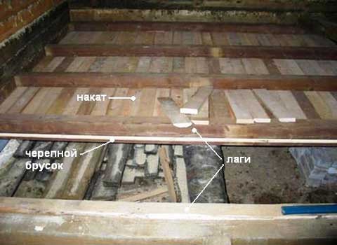 - Закрепване на груби дъски от дъното на изоставането и хидроизолационни настилки;
