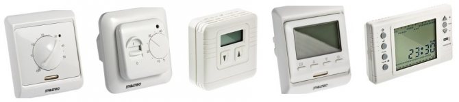 - електрическото подово отопление се регулира съвсем просто от електронно-механичен регулатор с оскъден набор от функции. Ръчно управление на колелата като ютия. Колелото е свързано с регулатор на постоянна температура. В този случай простотата е най-доброто решение както по отношение на цената, така и по отношение на здравината (рядко се чупи, лесно се ремонтира);