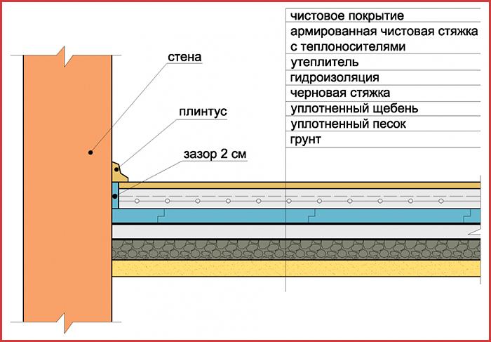 - Хидроизолационен материал - предотвратява навлизането на влага в отоплителната система. Препоръчителната дебелина на слоя е 5 мм.