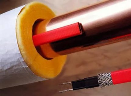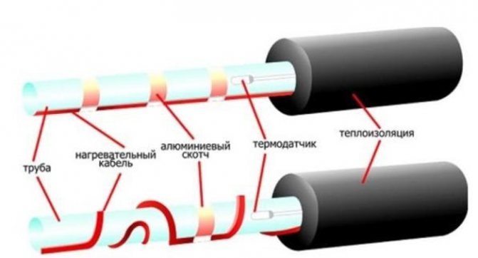 Нагревателният кабел, фиксиран към тръбата, ще помогне да се замени топлоизолационният "пашкул". Има различни методи за монтиране, като най-често срещаните са линейни и спирални. Вторият обхваща голяма площ на тръбата