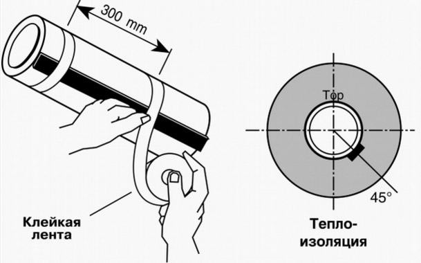След приключване на работата, трябва да увиете получената система с алуминиева лента за фиксиране и екраниране. За да се намалят топлинните загуби, се препоръчва да се добави топлоизолация.