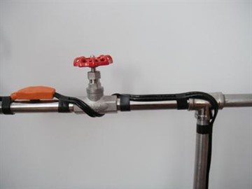 Основният тип връзка между нагревателя и тръбопровода, при който проводникът е поставен на повърхността и фиксиран с лепяща лента.
