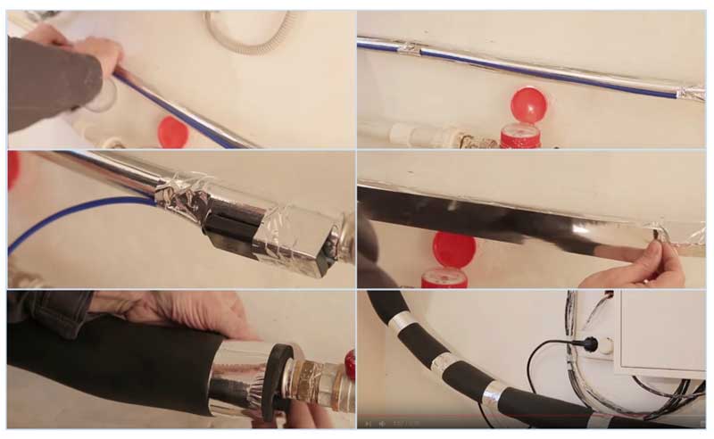 - По цялата дължина на тръбопровода е залепена лента от алуминиево фолио, за да се увеличи топлинният пренос към полимерните тръби.