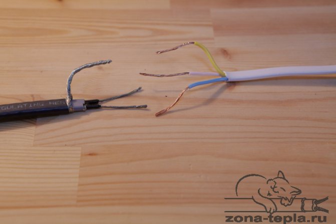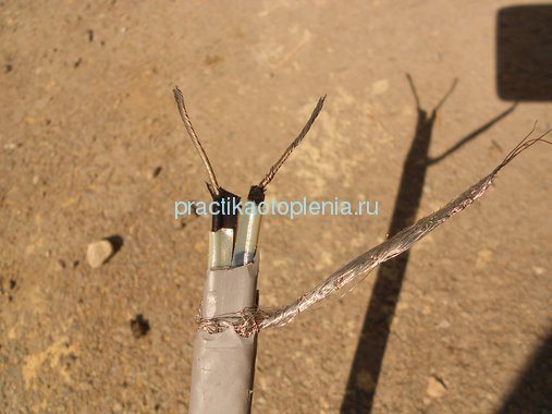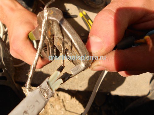 Ако нашият нагревателен кабел има заземителен екран, тогава ние свързваме екрана към земята: