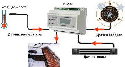 По-удобен вариант за работа е използването на сложно електронно управляващо устройство с възможност за програмиране. Такова оборудване може самостоятелно да контролира процеса на топене на валежите, тяхното количество и да наблюдава температурата. Контролерът бързо реагира на промените и взема оптимални решения, като избира най-добрия режим на работа за отоплително оборудване при съществуващи условия.