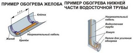За такива конструкции ще бъде достатъчно да се инсталира отоплителна система за улуци. Линейната мощност на положения кабел трябва постепенно да се увеличава. Те започват с 20-30 W на r / m и завършват с 60-70 W за всеки метър от канализацията.