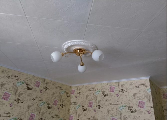 - Основното предимство е евтиността, а недостатъкът е способността за бързо абсорбиране на мръсотия и прах. Но такава плочка, тъй като се замърсява, може да бъде боядисана с акрилни съединения, така че таванът може бързо да се освежи.