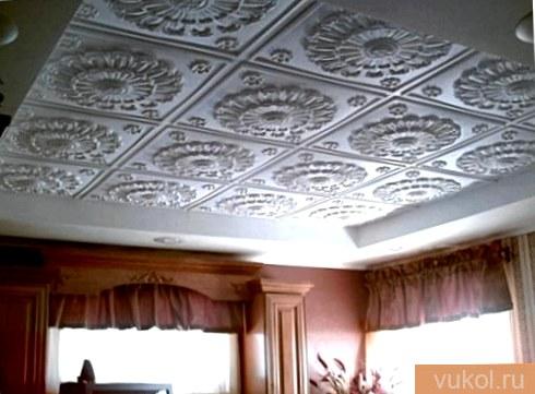 - За да разберете количеството материал за тавани с необичайна форма, не е трудно да направите шаблон от картон според размера на плочките, които харесвате. Чрез прилагането му към тавана може да се намерят интересуващите номера.