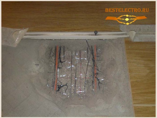 Случва се така, че когато инсталирате филмова конструкция, изливате бетон или монтирате плочки, можете да пробиете жиците на топъл под. Разбира се, невъзможно е да забележите това веднага, но повредата ще се прояви, когато системата бъде включена. Тогава ще бъде забележимо, че филмовият топъл под не се нагрява. Първата стъпка е да се определи точно къде е възникнала повредата. Ако беше възможно да се определи, че нагревателният кабел е счупен, тогава си струва да се намери мястото на повреда. Премахването на линолеум или ламиниран паркет няма да представлява проблем. Ще бъде много по-трудно да демонтирате плочките. След отваряне на горното покритие, като правило, няма да се вижда разбивка. След това трябва да отрежете кабела. Това ще създаде зона на звънене. След като определите разбивката, трябва да свържете всички разфасовки и повреди с съединители.