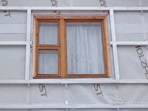 Същият проблем възниква и при стените. Въпреки факта, че сайдинг панелите са монтирани с припокриване, в случай на силен вятър, дъждовната вода все още попада под облицовката през пукнатините. Ако има хидроизолация, влагата тече надолу, без да уврежда конструкцията. Следователно външната декорация на сградата изисква вентилационна междина от 20-30 мм за полагане на изолационния материал.