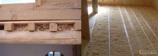 В зависимост от избрания материал, поставете го в пространството между дървените греди и го поставете плътно. Ако използвате пръскане, направете го до твърда структура на образувалата се плака. Отново, ако сте избрали тази опция - направете повърхностно покритие или започнете да полагате замазката.