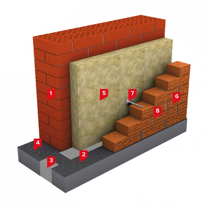 Материал - изолацията първо се залепва към носещата стена и след това се заковава. Закрепването на изолационните плочи започва от дъното на работната повърхност. Удобно е да нанасяте лепилото с малка или голяма мистрия. Смес от лепило се нанася върху повърхността на стената, като едновременно изравнява възможните неравности. Ленти от минерална вата или пяна са прикрепени, за да оформят Т-връзки.