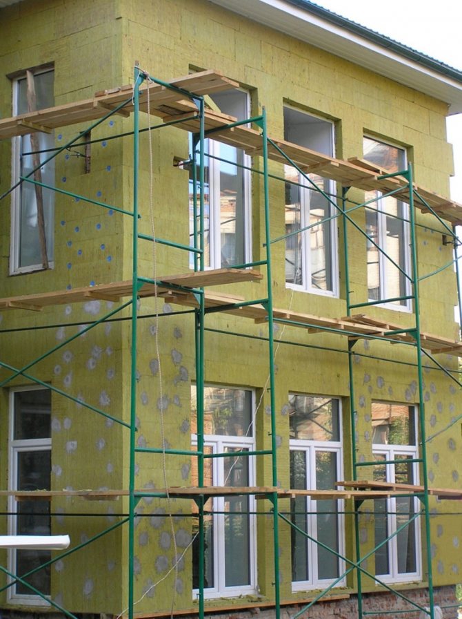 Същността на технологията се крие във факта, че изолационните плочи са прикрепени към външната повърхност на сградата, върху която е нанесен слой мазилка.