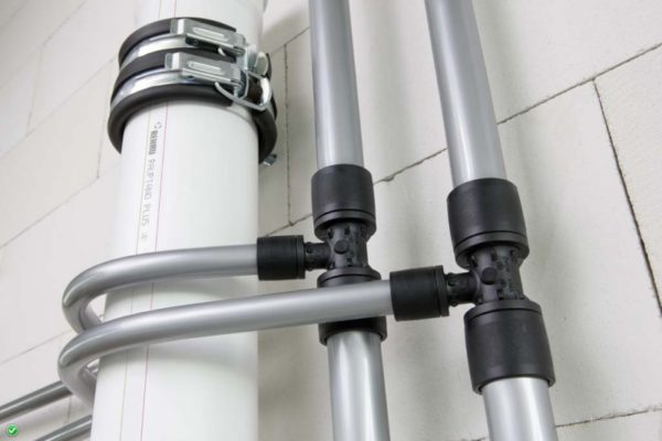 Отделните участъци на тръбопровода са свързани с фитинги и аксесоари с подходящ размер.
