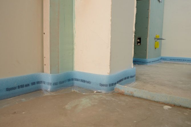 DSP замазката ще бъде отделена от стените на помещението, за което около периметъра на помещението са закрепени амортисьорна лента или ленти от всякакъв твърд изолационен материал 5-10 mm.