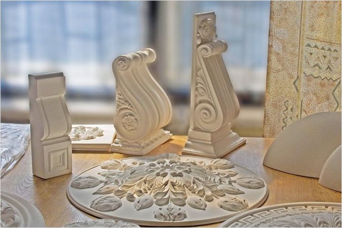 Освен това се извършва висококачествено грундиране на всички декоративни елементи с помощта на специално решение. На последния етап полимерният декор е боядисан с акрилни багрила съгласно проектния проект. За да увеличите експлоатационния живот на продуктите, професионалистите препоръчват боядисване 2-3 пъти.