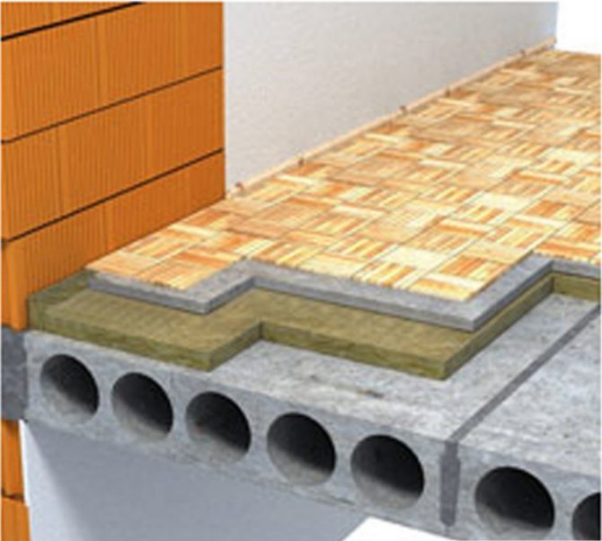 - Между етажите. За да не се наблюдават топлинни загуби в апартаментите по време на отоплителния сезон, топлоизолацията се извършва между подове в слоеве от бетонна замазка. За такива конструкции експандираната глина, базалтова вълна или експандиран полистирол се считат за най-добрите варианти.