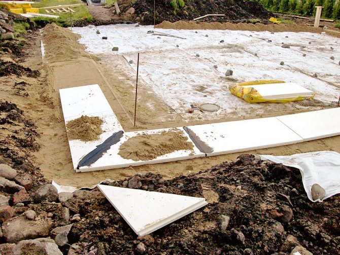 (XPS, пеноплекс и др.), Позволяващи да се намали дълбочината на сезонното замръзване под основата на фундамента и да се запази границата на замръзване в слой непореста почва (почвена възглавница).