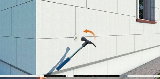 Стартовият профил трябва да бъде фиксиран на височина 40-60 см от нивото на земята по целия периметър на конструкцията. Профилът е прикрепен към котвата в размер на 3 крепежни елементи на линеен метър. Необходимо е да се остави празнина от 3-4 мм между съседните профили. в случай на термично разширение.