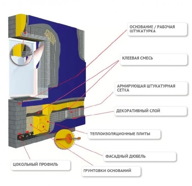 Препоръка! Работата по монтажа на мокри фасади трябва да се извърши, след като покривът, прозорците, вратите вече са доставени, окабеляването е положено и първоначалното завършване вътре в сградата е направено.