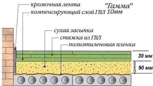 Преди да се пристъпи към събирането на суха замазка от листове GVL, върху дървена или стоманобетонна основа се полага слой хидроизолационен материал. За тази цел най-често се използва експандирана глина, тъй като тя изравнява и изолира добре пода.Въпреки това, първият слой, който поставяте директно върху повърхността на подовете, трябва да бъде полиетилен с дебелина 200 микрона или повече. На някои етажи можете да поставите пергамент или покривна хартия. Този първи слой ще поеме функцията за бариера срещу пара.